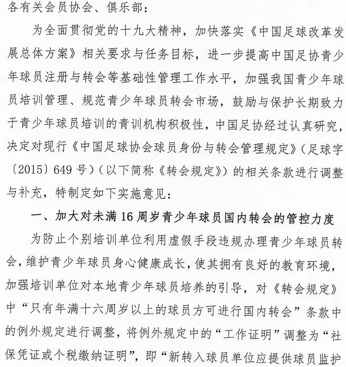 关注我们 分享 用微信扫码二维码 分享至好友和朋友圈 关于调整青少年球员转会与培训补偿标准管理制度的实施意见 2018-01-31 18:42 用微信扫码二维码 分享至好友和朋友圈 (编辑:李鑫) 相关新闻 中国足协关于下发《中国足球协会球员身份与转会管理规定》的通知 中国足球协会青少年足球运动员骨龄参赛管理办法