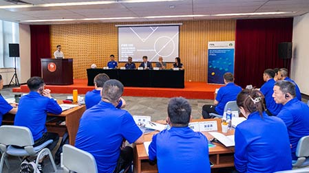 主讲师周穗安向学员强调,所有学员要严格遵守教练员培训的各项管理制度和教练员行为规范,脚踏实地、努力提升个人业务水平和能力。助理讲师戴振澎向各位学员详细介绍了2023年改版后的A级教练员培训政策及考核办法。根据中国足协教练员培训的课程要求,24名学员将在两个阶段共计约28天的课程中进一步提升指导球队进行整体训练的能力,系统更新足球技战术、比赛分析、团队管理、体能训练、竞赛规则方面的知识,完成三次实践考试、两次理论考试、一次比赛分析考试,并须在课程间歇期间完成相应的训练课作业。