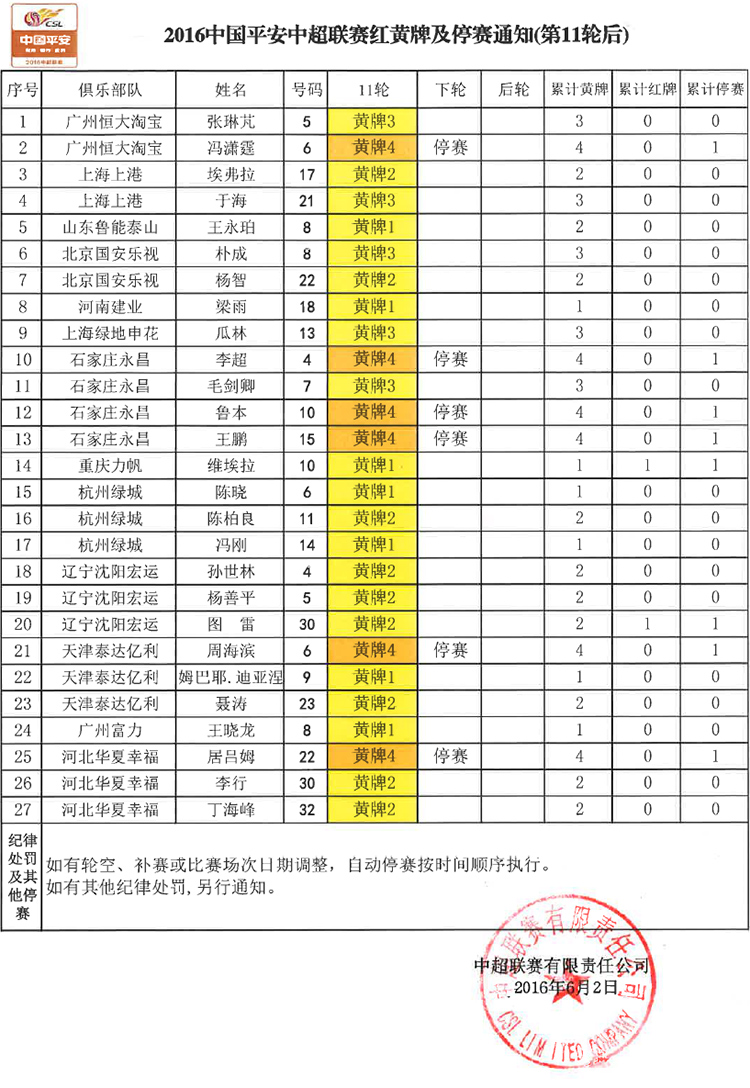 关注我们 分享 用微信扫码二维码 分享至好友和朋友圈 2016中国平安中超联赛红黄牌及停赛通知(第11轮后) 2016-06-03 10:19 中国足球协会 用微信扫码二维码 分享至好友和朋友圈 (编辑:中国足球协会) 相关新闻 2016中超预备队联赛红黄牌及停赛通知(第16轮及7.14补赛后) 2016中国平安中超联赛红黄牌及停赛通知(第16轮后) 2016中超预备队联赛红黄牌及停赛通知(第16轮后) 2016中国平安中超联赛红黄牌及停赛通知(第15轮后)