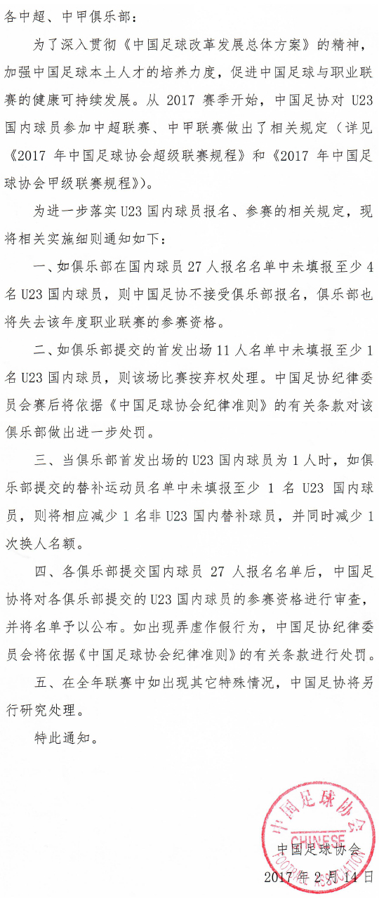 关注我们 分享 用微信扫码二维码 分享至好友和朋友圈 中国足协关于2017年中超联赛、中甲联赛规程的补充通知 2017-02-14 19:28 中国足球协会 用微信扫码二维码 分享至好友和朋友圈 (编辑:中国足球协会) 相关新闻 2018中超俱乐部预备队联赛规程 2018中国足球协会超级联赛规程 2018年中乙联赛相关文件及表格