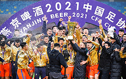 山东鲁能泰山足球俱乐部2020年12月19日下午15点,燕京啤酒2020中国足协杯决赛在苏州奥体中心打响,兵强马壮、状态正佳的山东鲁能泰山队依靠王彤和宋龙的进球,两球战胜全华班江苏苏宁易购队,第六次问鼎中国足协杯冠军。