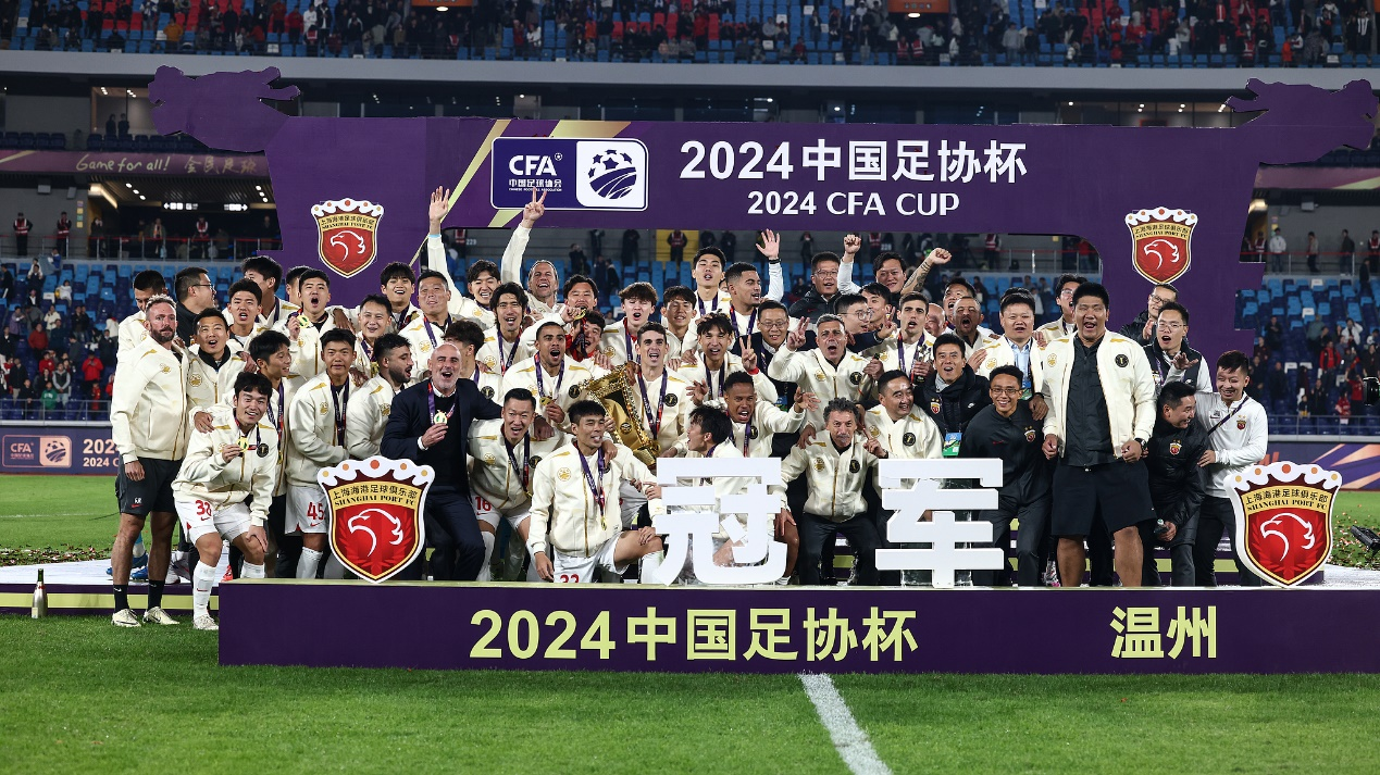 上海海港足球俱乐部2024年11月23日,2024中国足协杯决赛在温州奥体中心体育场打响。山东泰山与上海海港在32022名球迷的忘情呐喊声中,上演精彩对决,最终上海海港凭借李帅、奇塔迪尼的进球以及王振澳在补时第三分钟的进球,3:1战胜山东泰山,队史首次登顶中国足协杯。