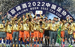 山东泰山足球俱乐部2022年1月9日晚,在新落成的成都凤凰山体育公园专业足球场,山东泰山1:0击败上海海港,捧起2021赛季足协杯冠军奖杯,这也是山东泰山第7次获得足协杯冠军。